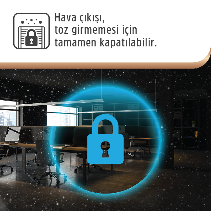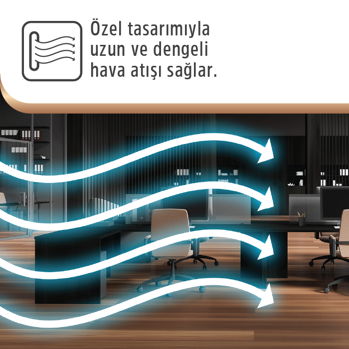 Kendi kendini temizleme özelliği ve toz filtreleri sayesinde büyük ve kalabalık ortamlardaki havayı süzer, ferah ve sağlıklı bir alan sunar. Cihazın ergonomik ve zarif dizaynı, ortamın dekorasyonuna kolayca uyum sağlayarak gereksiz yer kaplamaz, görsel estetiği bozmadan ticari veya konut projelerinizde prestijli bir görünüm sergiler.